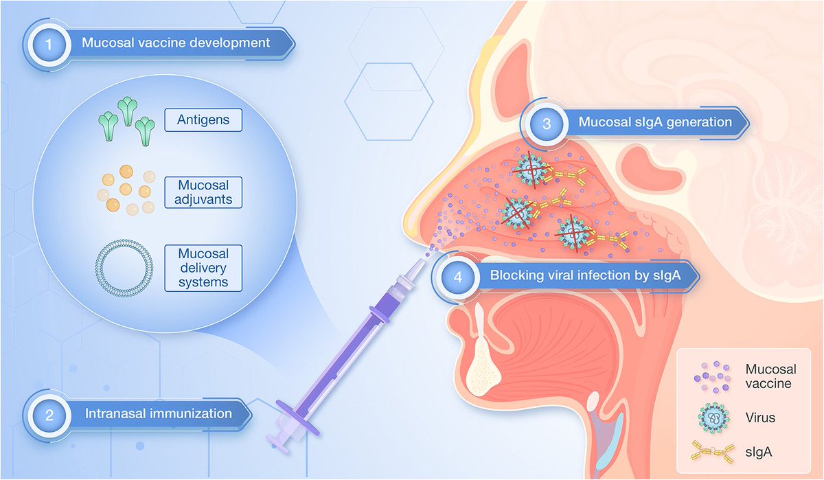➡️ Mucosal booster vaccines can build a stronger frontline defense in the airways than current vaccines or hybrid immunity, making them a promising approach for COVID and other airborne viruses. 5/