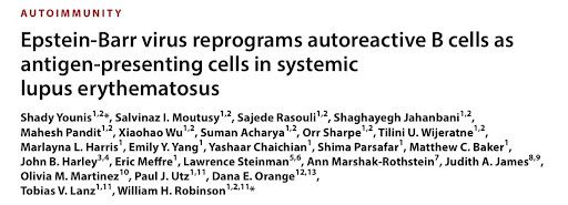 In lupus (SLE), Epstein Barr virus (EBV) infects B cells that react to the body’s own nuclear material. EBV then changes these B cells so they act like antigen presenting cells. This may help drive the autoimmune process