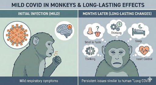 Mild COVID in monkeys caused long lasting changes in brain and body.
