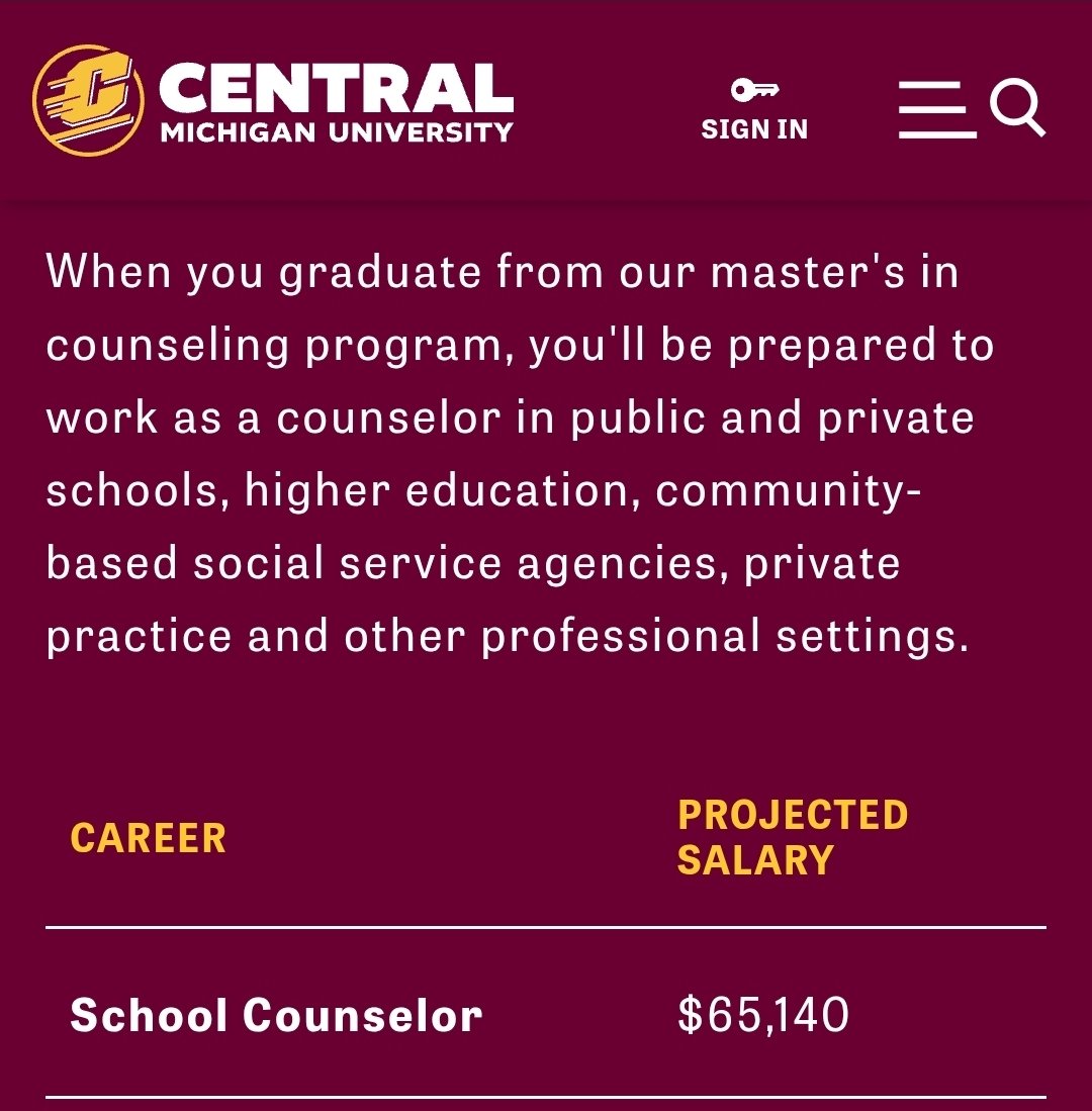 @CMUniversity One of the main professions advertised by @CMUniversity is "School Counselor."