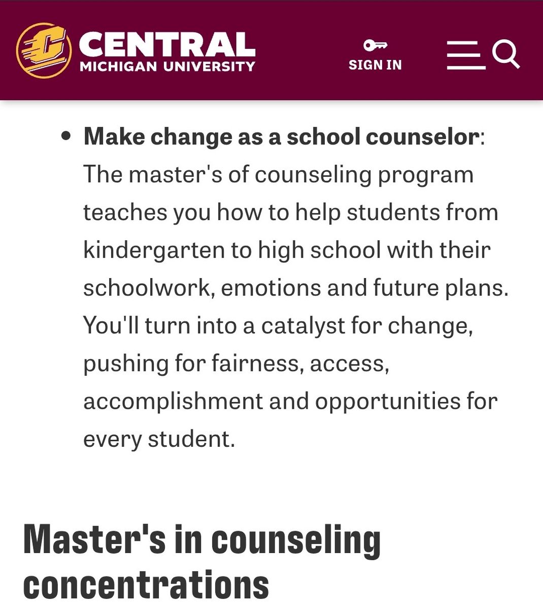 @CMUniversity Their master's of counseling program website says it can help you become a school counselor for K-12 children.