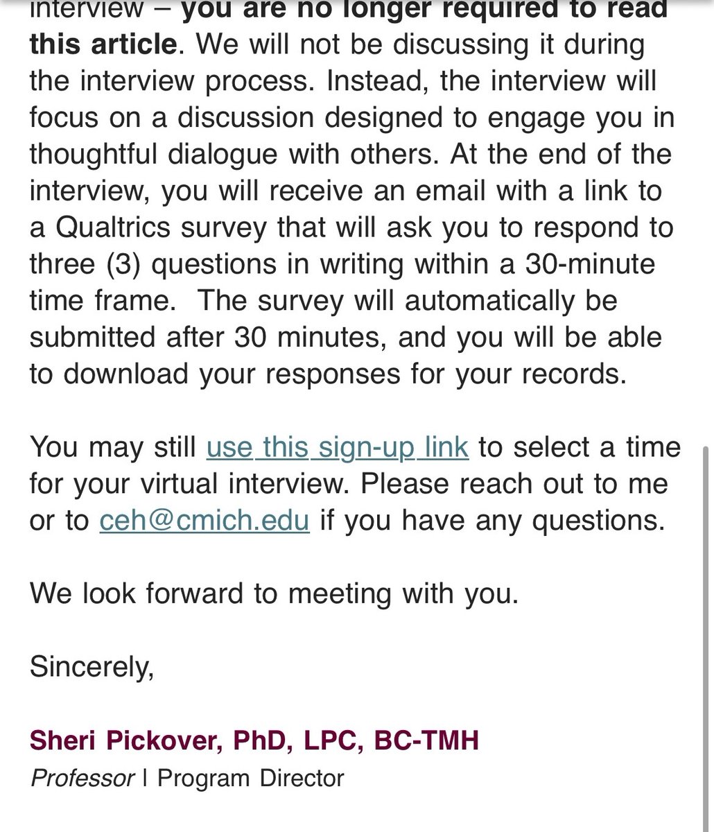 "This group interview is to determine acceptance into the @CMUniversity MA Counseling Program"