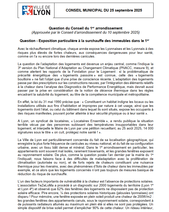 Q° des arrondissements : l'été caniculaire se réinvite dans les débats, avec les mesures demandées pour réduire la chaleur dans les logements des pentes.