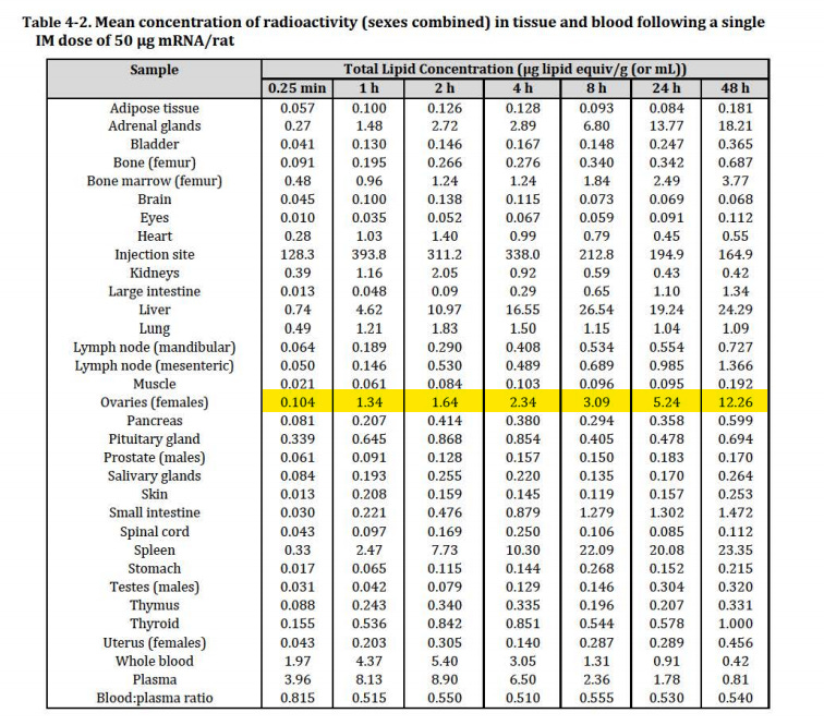 It wasn't just Pfizer that hid the fact that the mRNA-LNP complex went to the ovaries (where it could not possibly provide its declared function in the lung).