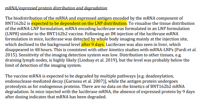 The argument here is irrelevant of which piece of RNA or plasmid is attached to the LNP (lipid nanoparticle), because its distribution will be ONLY dictated by the LNP...