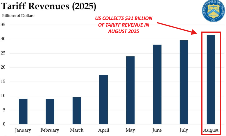 In August 2025 alone, the US collected $31 billion of tariff revenue.