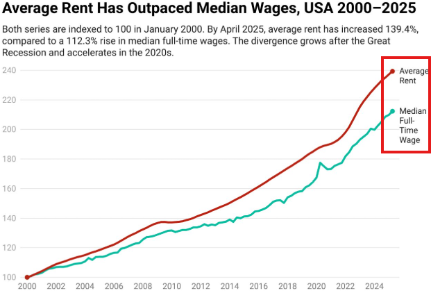 Growth in rents has outpaced wage growth by +24 percentage points.