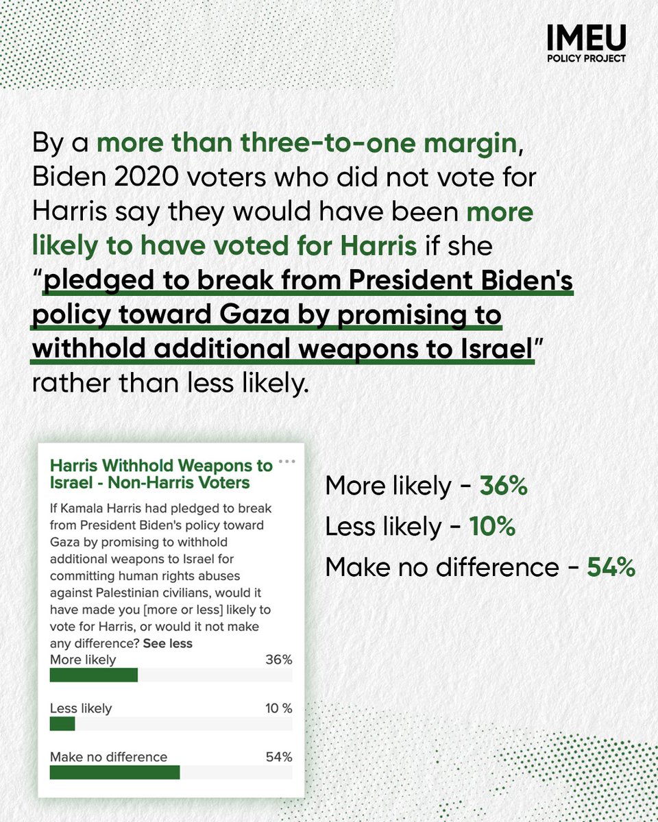 Our poll out today with @YouGov finds Biden 2020 voters who did not vote for Harris name "ending Israel's violence in Gaza" as the top issue affecting their vote choice.
