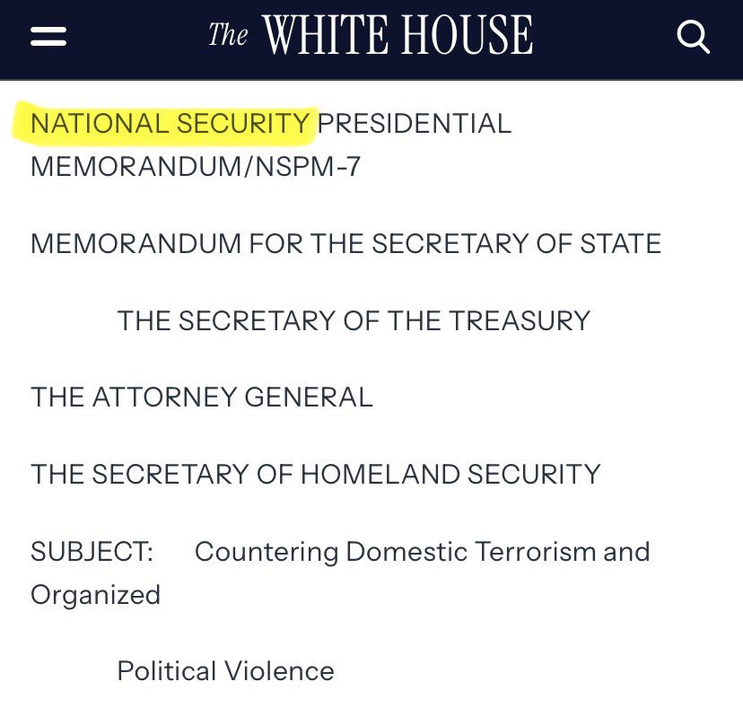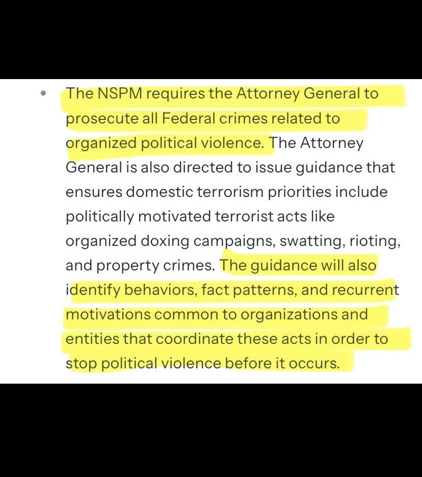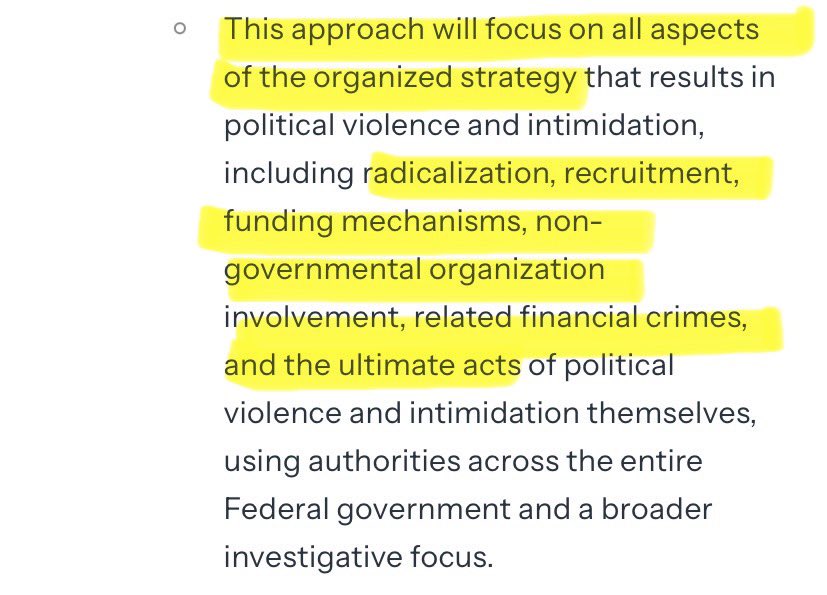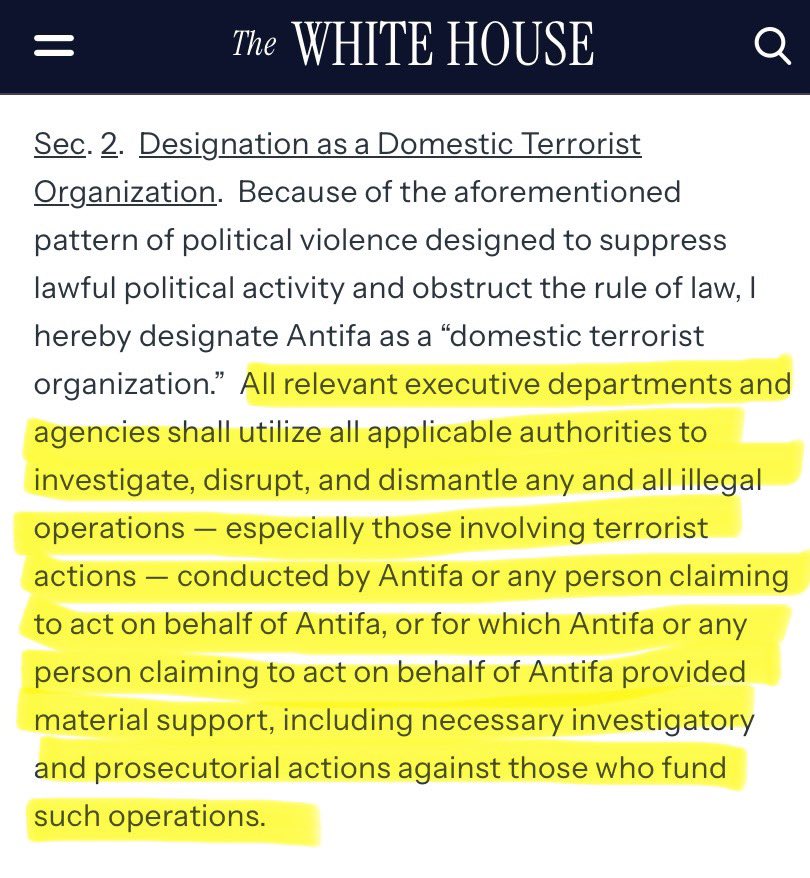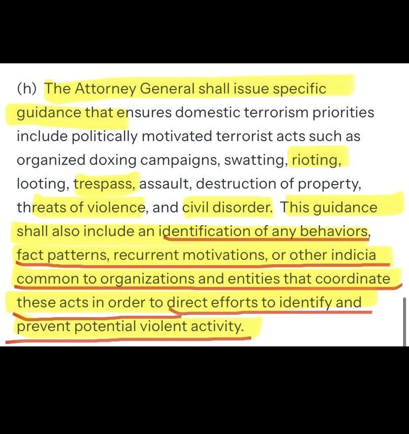 1) I did a thread on this executive order, but the fact sheet for it contains some very telling language that proves this order is actually designed to silence political opposition and dissent. “Terrorism” is anything they say is “terrorism”. Let’s begin⬇️