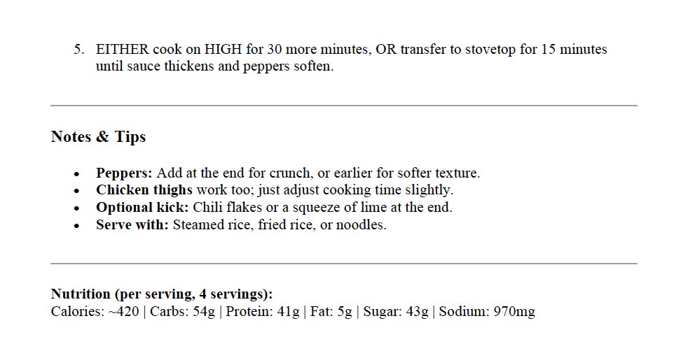 Bonus Recipe: My Sweet and Sour Chicken for the Crockpot, over rice or noodles. It's yummy!