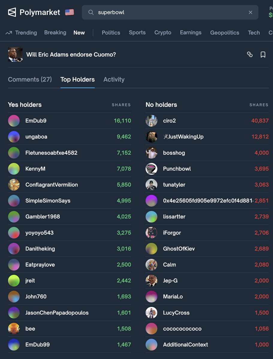 A major political event that is shifting in real time, and its largely because of new wallets, large size from fresh wallets