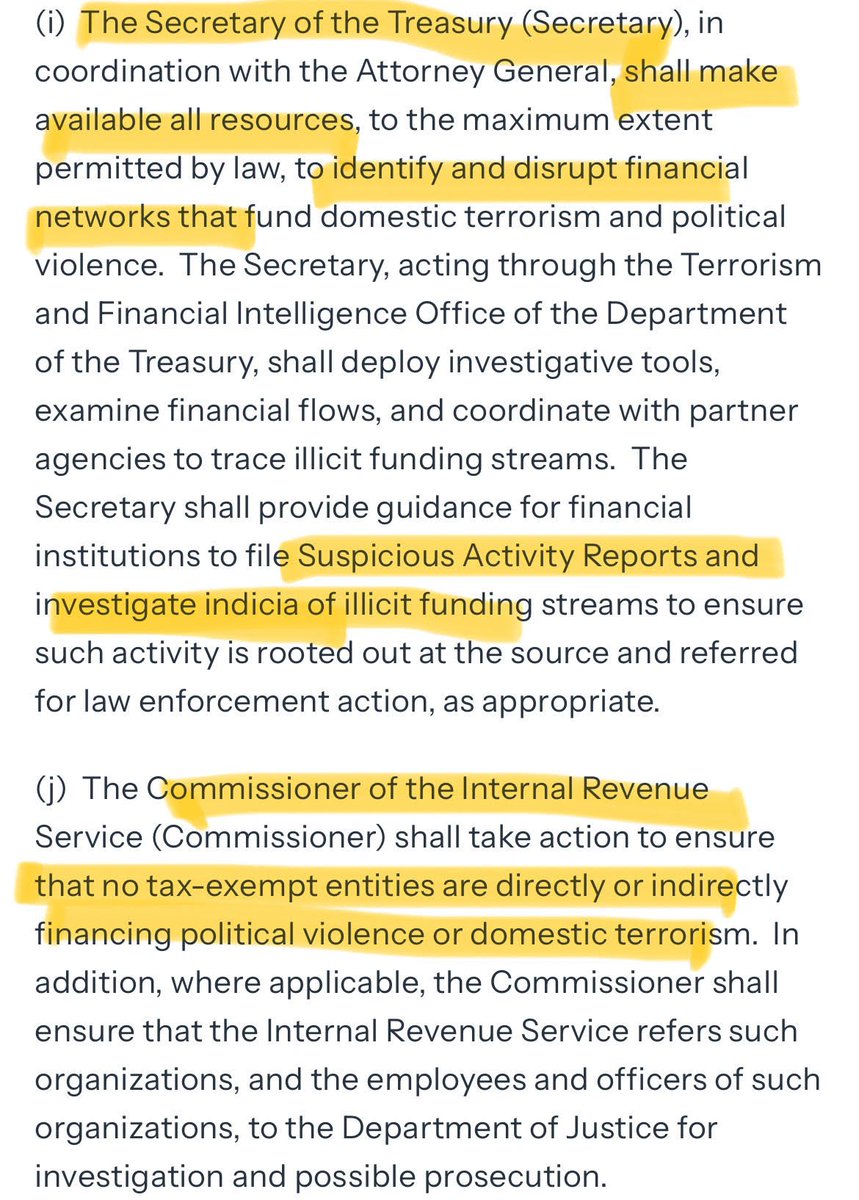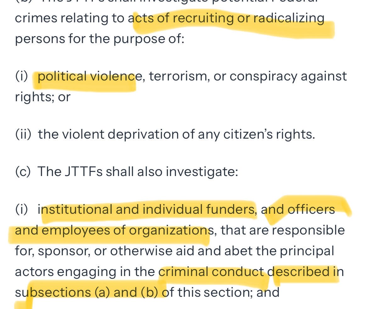 The goal of this memoranda is to create legal cover for Kash Patel to create NSLs to investigate *ANY* person who expresses anti-Trump, anti-MAGA or anti-fascist rhetoric.