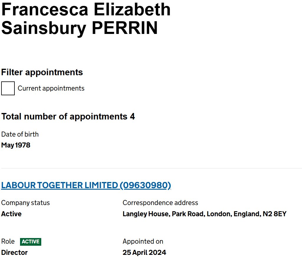 Chinn was a director of Labour Together from 31 March 2016 – 16 September 2024.
