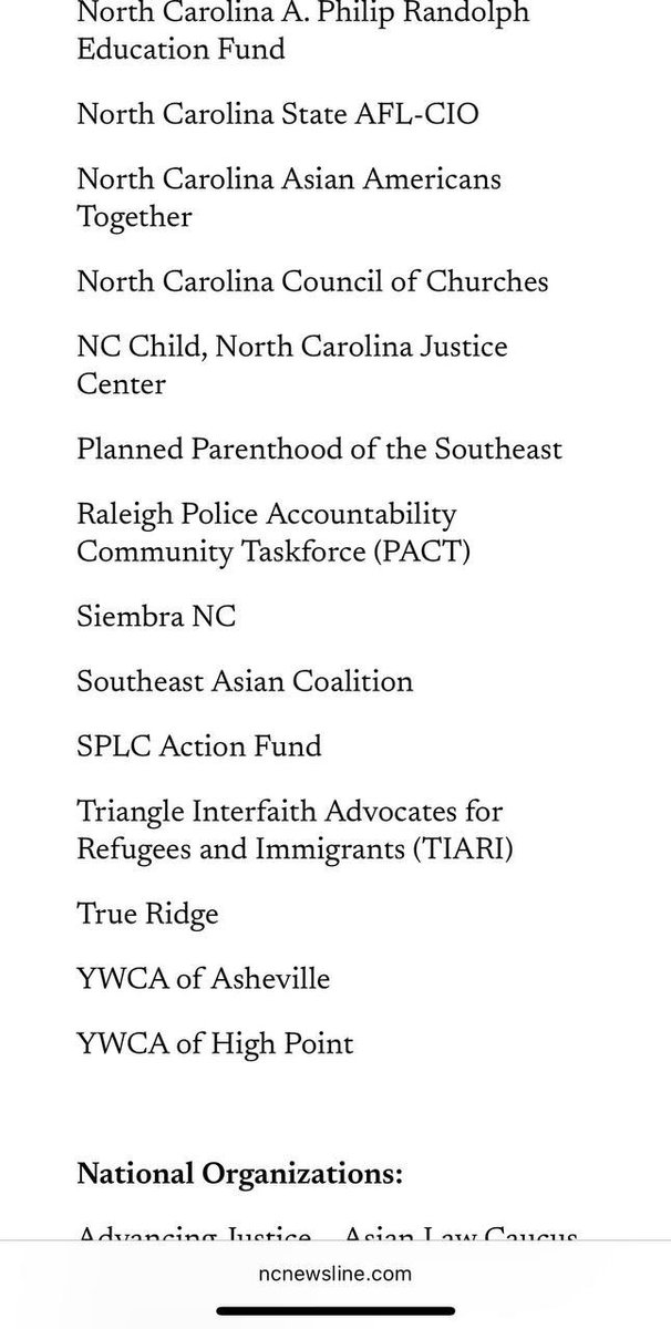 Here’s more screenshots showing which groups were listed on a letter calling for Governor Roy Cooper to VETO HB 370.