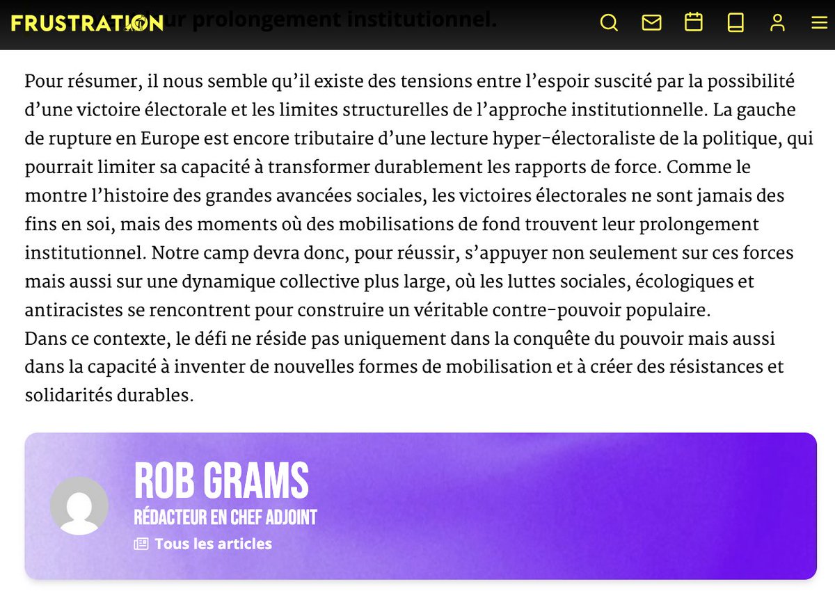 La suite on la connait : une coalition bancale qui vient anesthésier le mouvement de contestation naissant, un score pas dégueu mais pas suffisant, une extrême droite tjs plus forte et prête à s'allier avec la droite et le centre si nécessaire /10