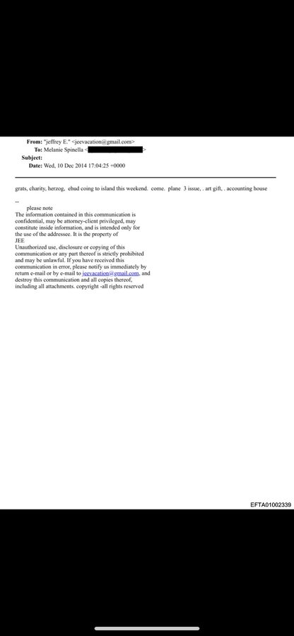 The messages are an exchange between Epstein + Melanie Spinella, an assistant to billionaire Leon Black, who was a major funder of Herzog’s campaigns.