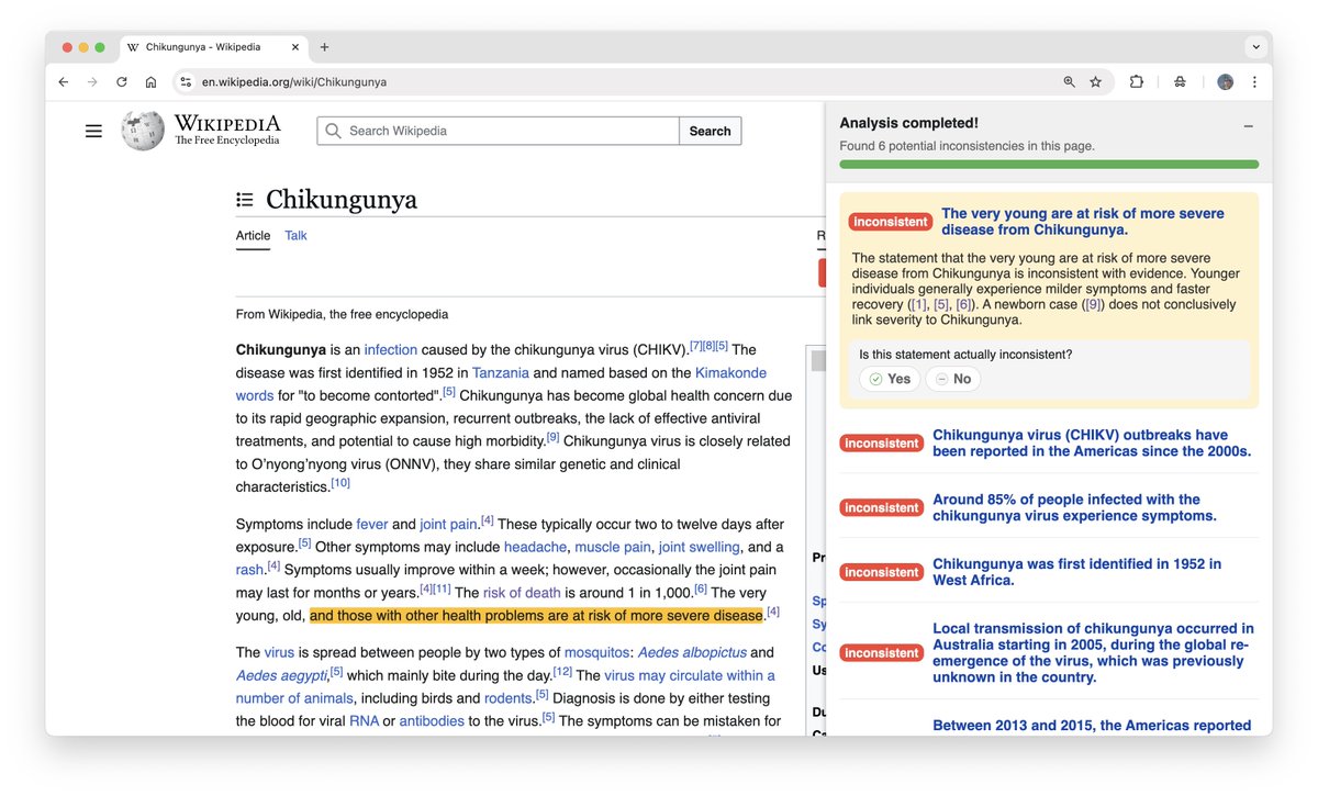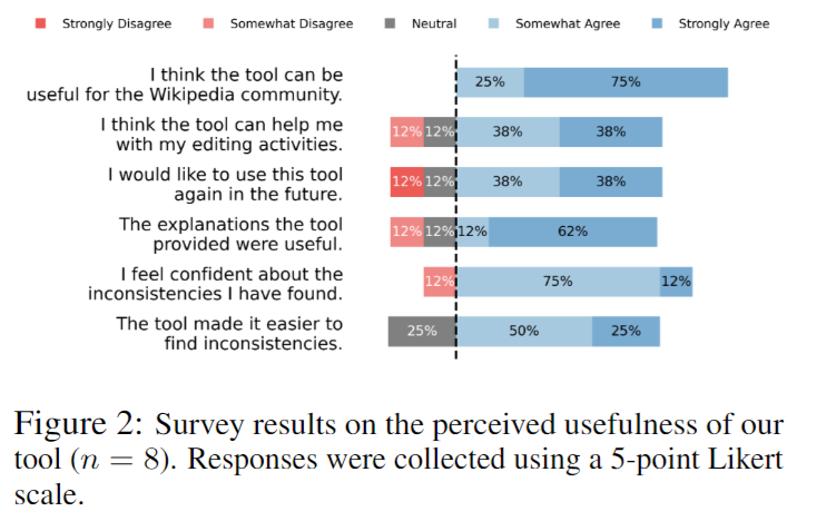 In a user study with experienced Wikipedia editors, CLAIRE led to 64.7% more inconsistencies found in the same time; 87.5% reported higher confidence.