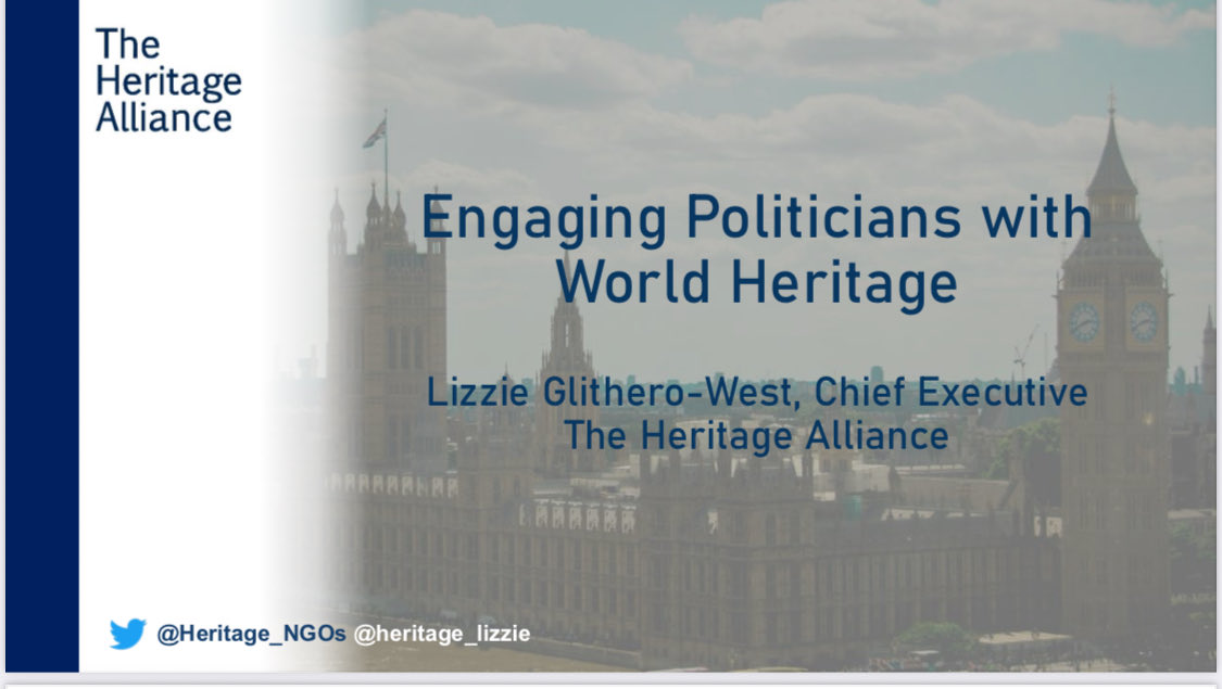 Next up I spoke for @Heritage_NGOs about advocacy and engaging politicians & decision makers with world heritage. The need for evidence & case studies as well as local engagement using our tools. Some great material on heritage as a public good from WHS…