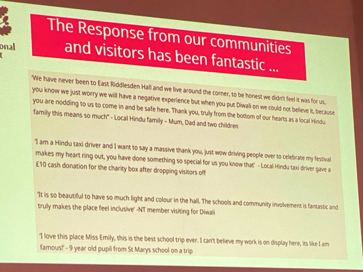 @bradford2025 Next the @nationaltrust team at East Riddlesden Hall, particularly work with the Hindu Council. Encouraging engagement from locals. There was nervousness about the political context too. Engagement officer spending lots of time with local community groups getting to know people.