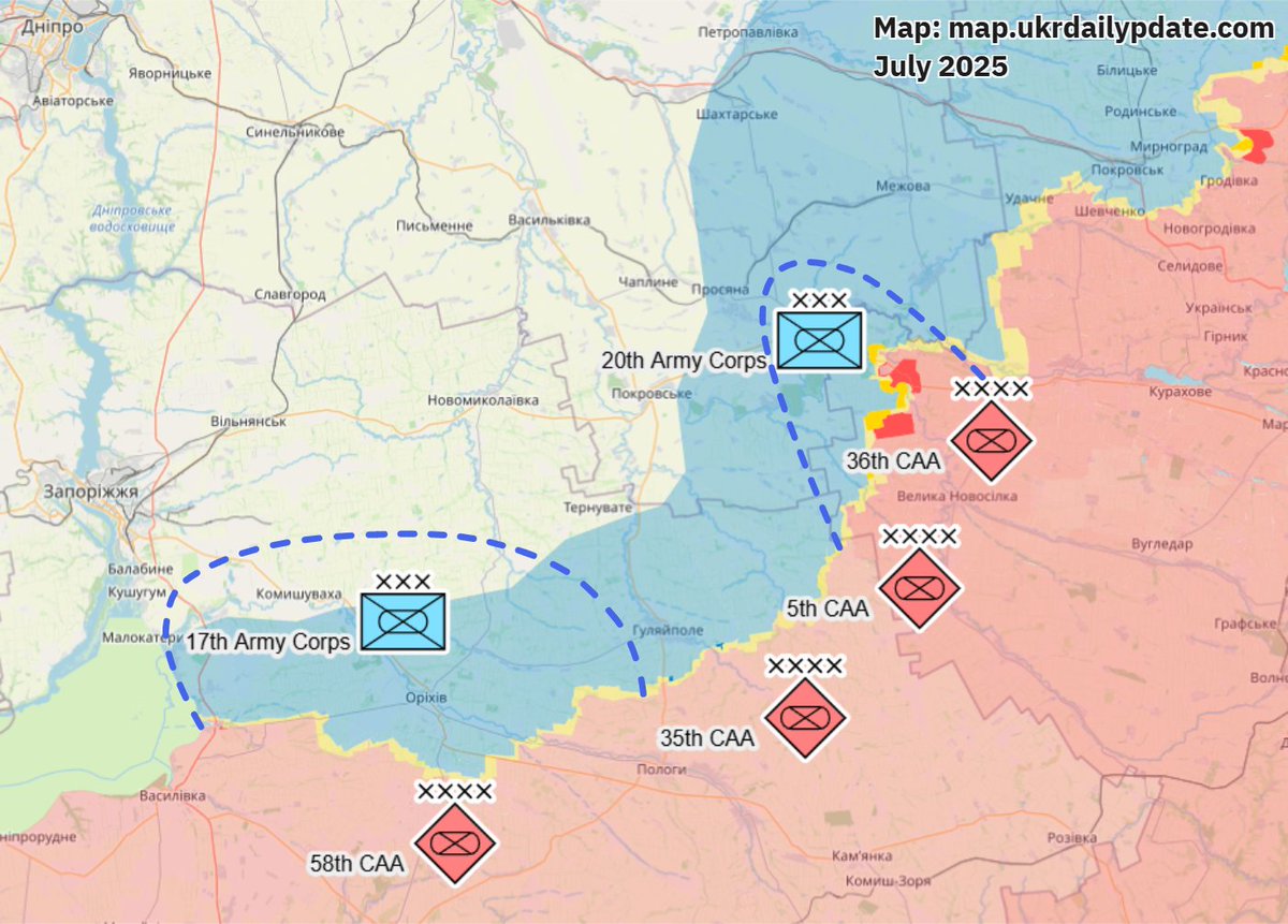 The Ukrainian 17th Army Corps (17AK) has likely deployed to the front, replacing the Operational Tactical Group (OTU) Zaporizhzhia.