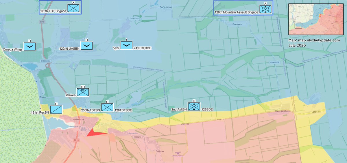 On the western flank, the frontline towns of Kam'yans'ke, Stepove and Mali Shcherbaky have long been held by the 128th TDF Brigade and 128th Mountain Assault Brigade respectively.