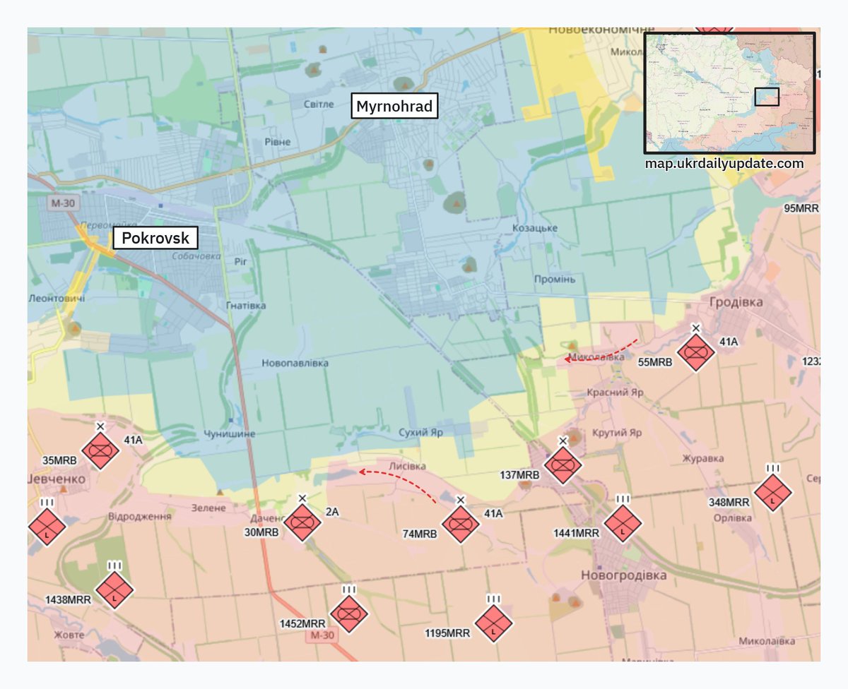 The 336th Naval Infantry Brigade has redeployed toward Pokrovsk as well, joining the 177th Regiment and the 61st, 155th and 40th Brigades already in the area — all likely operating under the Russian Naval Infantry grouping.