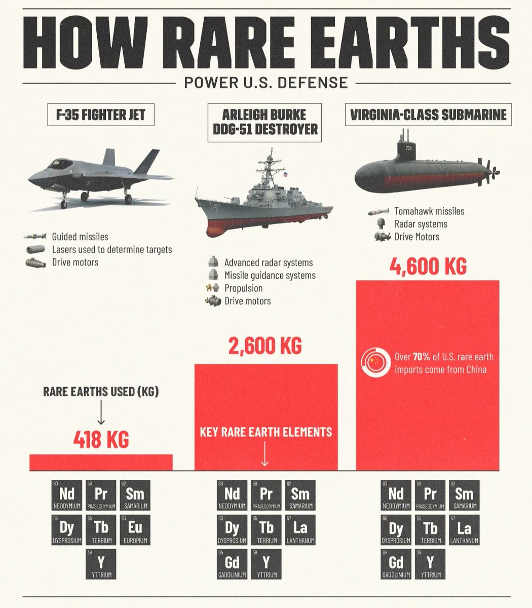 China added 5 rare earths to the restricted list: holmium (Ho), erbium (Er), thulium (Tm), europium (Eu), and ytterbium (Yb)—critical for lasers, fiber optics, and defense systems.