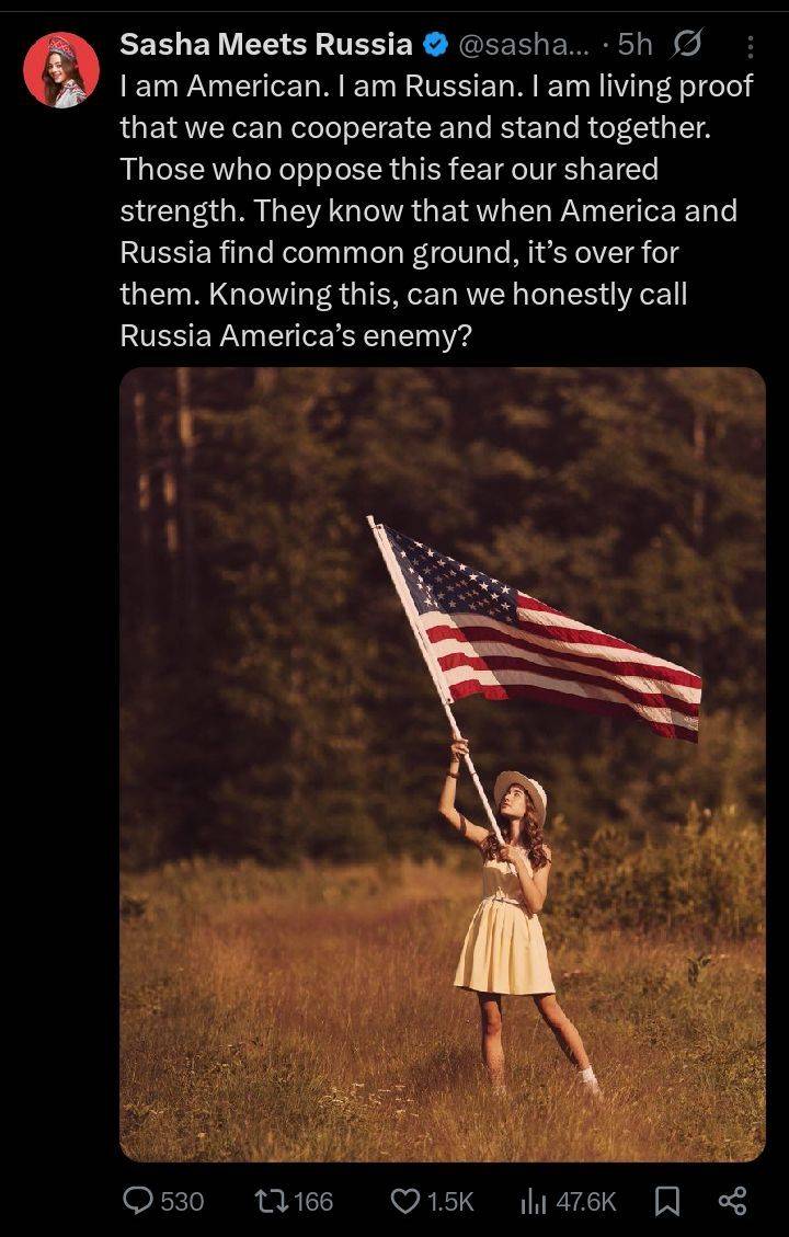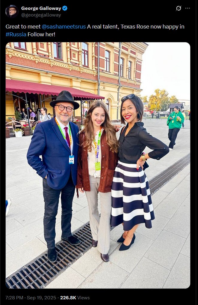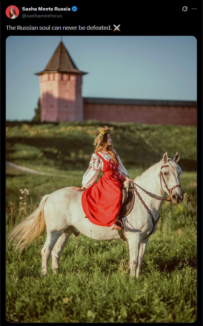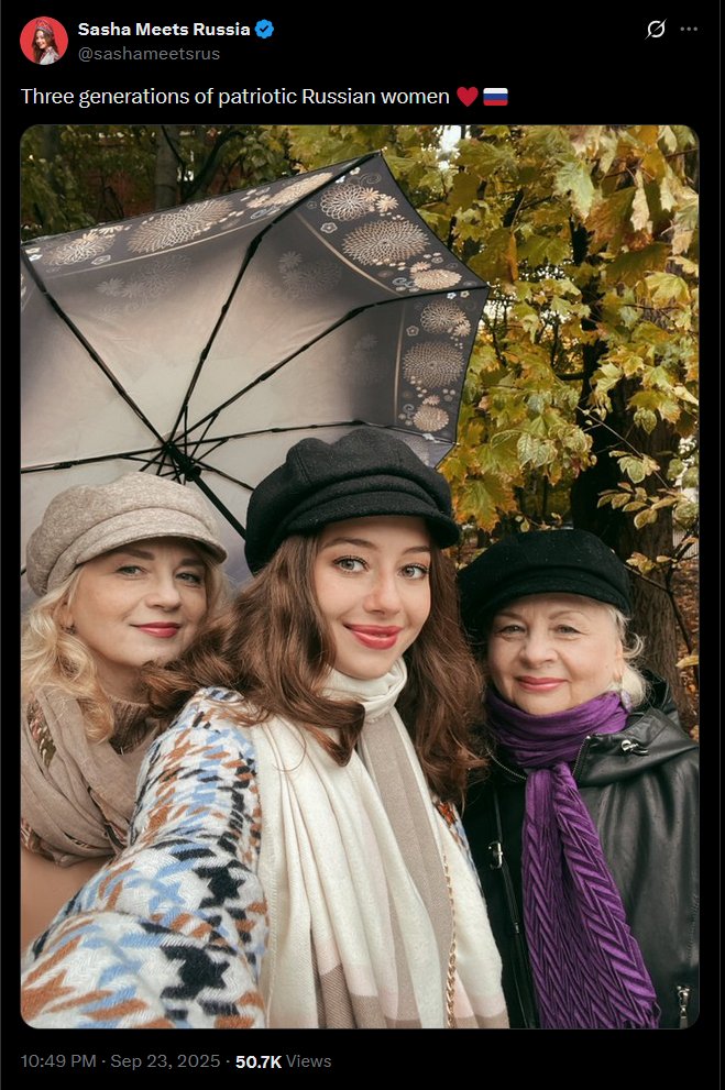 With Russia, everything is a lie — a Potemkin façade. Her job is to sell this façade to naive English-speaking audiences, creating the illusion of a conservative, spiritual, and traditional country that values family. Of course, nothing could be further from the truth.