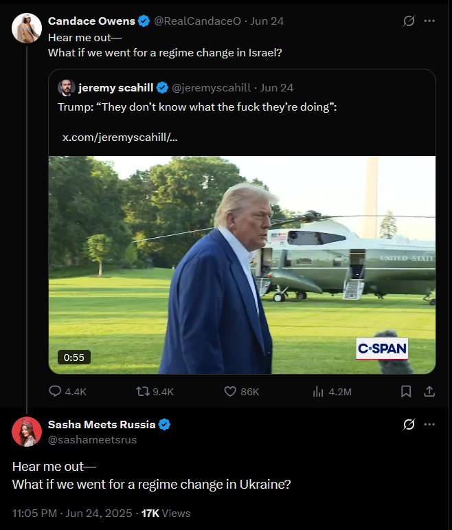 Over time — perhaps following instructions from her handlers — she began addressing geopolitics and especially the Russo-Ukrainian War, mainly targeting American audiences by suggesting that their “tax money” is being wasted in Ukraine.