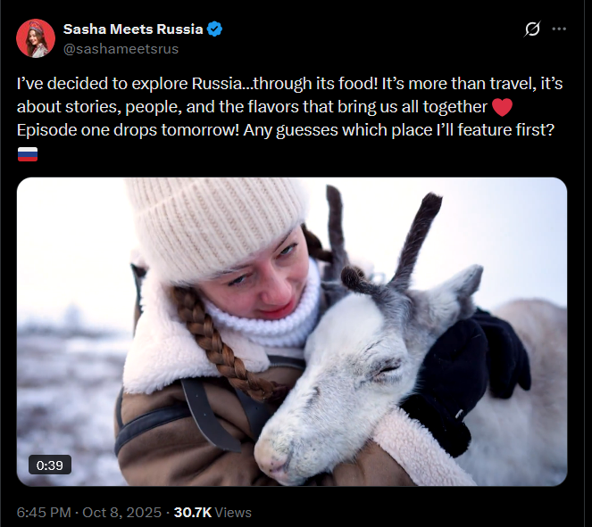Alexandra’s content has high production value, and her videos have performed relatively well across various platforms. Most of her social media output revolves around one idea: portraying Russia in a positive light for foreigners while encouraging them to emigrate there.