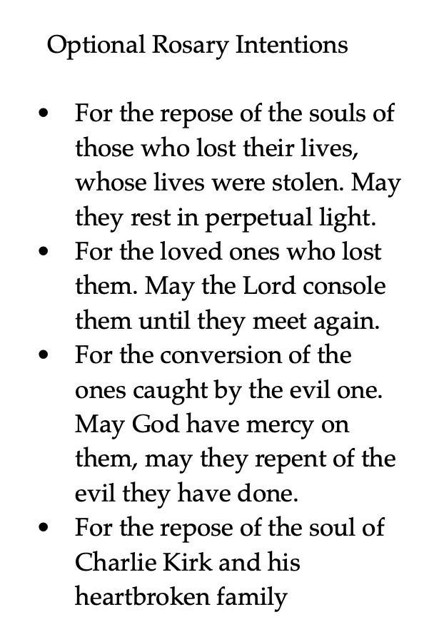 Intentions are optional. Pray with your own intentions and/or use the ones given here, post yours in reply if you want to. (They’ll show up at the end of the thread, most likely.) We’re here to pray for the world, our country, and each other.