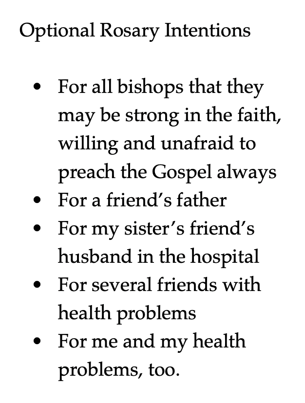 Thank you for praying the Holy Rosary with me. Please pray for our bishops and pope, that they may be strong in the faith, and may we be not afraid to become saints. May His peace be always with you. +JMJ+