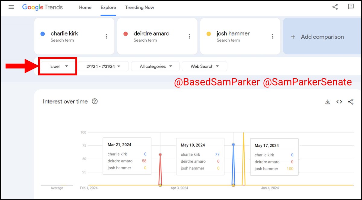 ▪️Was Josh Hammer assigned as Charlie Kirk's handler in the spring of 2024? Is that why they trended together in israel on those dates? Is that why Hammer started closely associating with Kirk then?