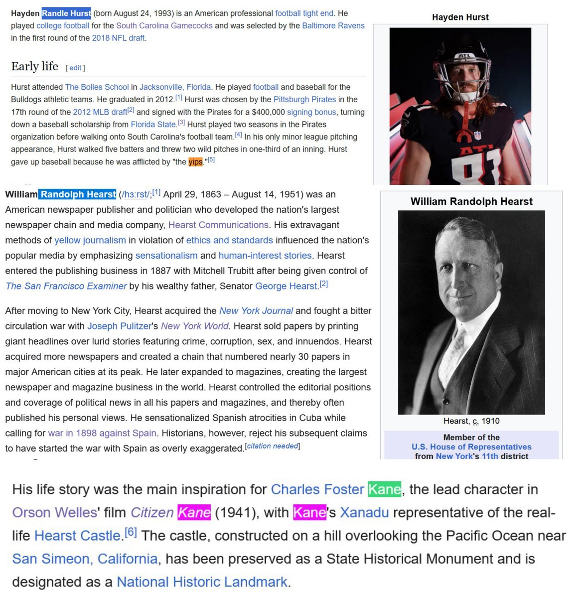 Hearst + Hurt = Hurst. It's also HH Hayden Hurst which can invoke Heil Hitler...