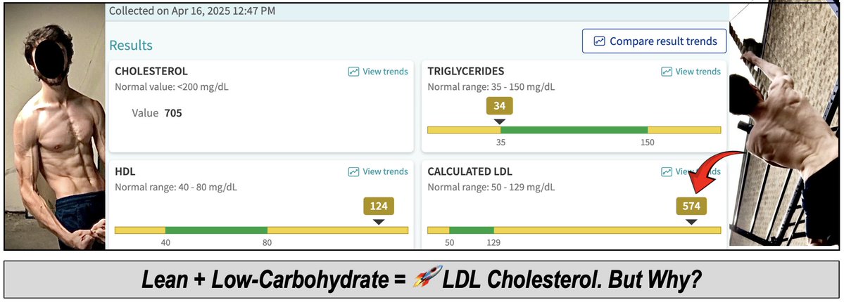 My colleague, Dr Professor @AdrianSotoMota MD PhD, cared for a 60-year-old male patient with type 2 diabetes. The patient adopted a ketogenic diet and his BMI steadily decreased from 29.5 kg/m2 to 24.5g/m2. During his weight loss journey, his LDL-C remained ~95 mg/dl until he reached the “healthy” BMI range (< 25 kg/m2). Then, his LDL-C jumped to 183 mg/dl.