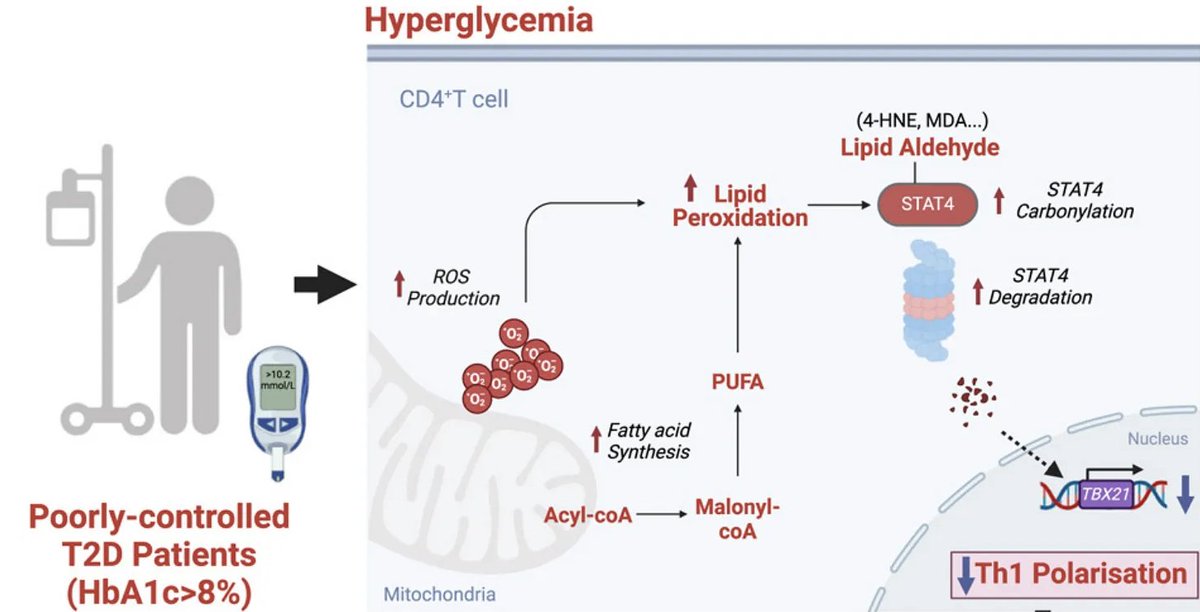 💉This sequence ultimately leads to impaired immune response and higher morbidity and mortality in those with T2D and poor glycemic control.