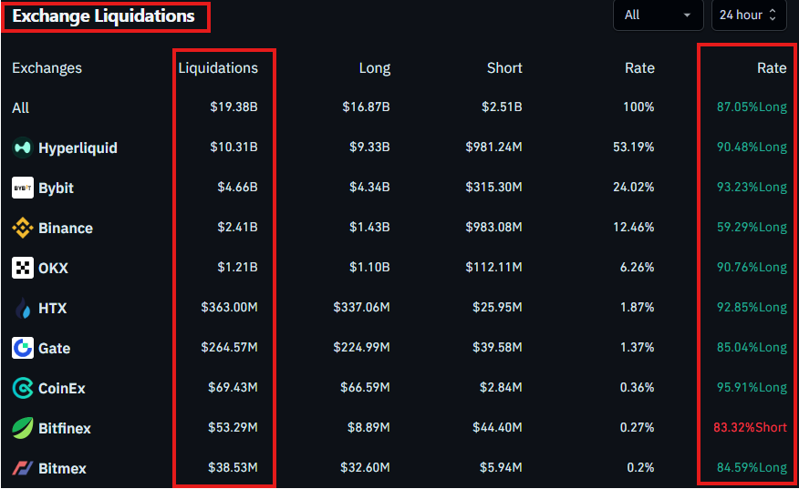 Over $19 BILLION worth of leveraged crypto positions were liquidated in 24 hours, 9 TIMES the previous record.