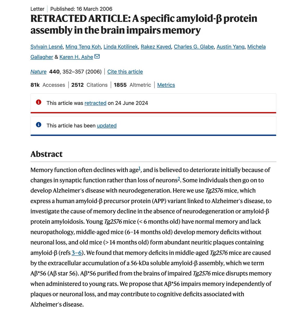 @MidwesternDoc A neuroscientist uncovered it by accident 15 years later while reviewing Alzheimer’s research for investors.