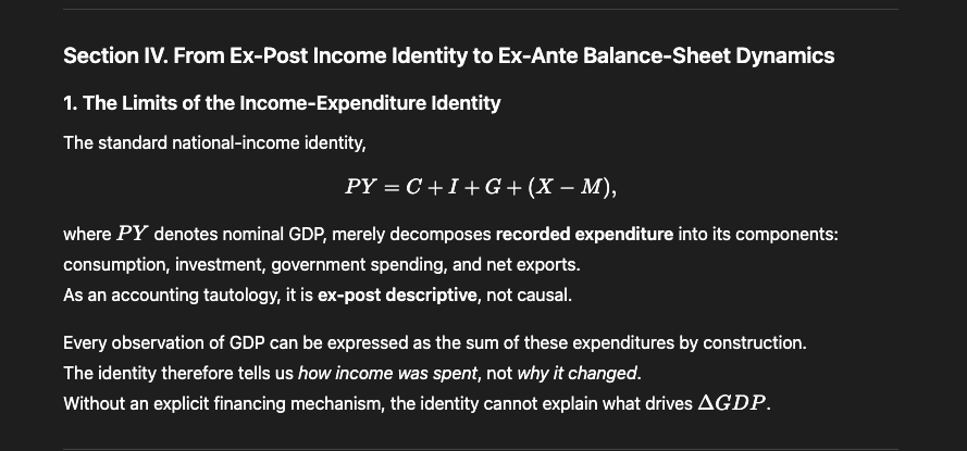 @russellwadey From Ex-Post Income Identity to Ex-Ante Balance-Sheet Dynamics