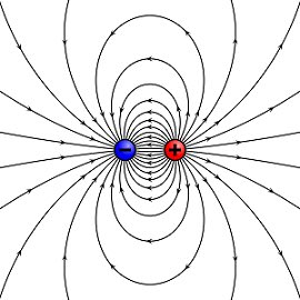 , decreases exponentially with distance (