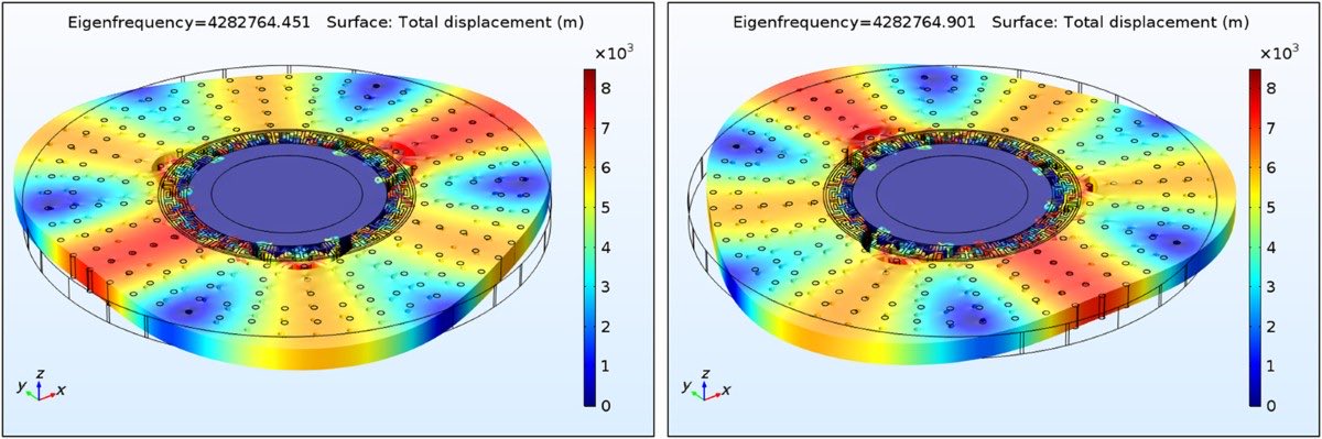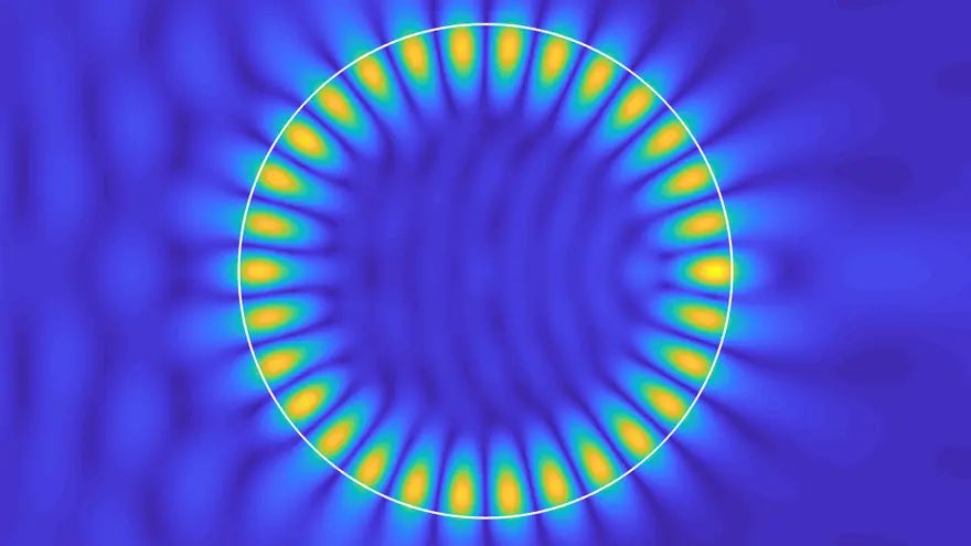 The image is a visualization of a whispering gallery mode (WGM), which is a type of optical resonance that occurs in a circular or spherical cavity
