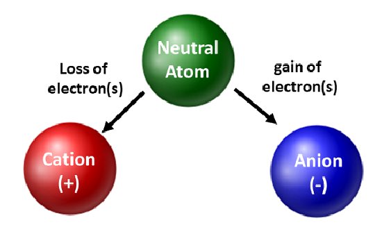 •The loss of these negatively charged electrons leaves the atom with an imbalance of charges, where the number of positive protons is greater than the number of negative electrons.