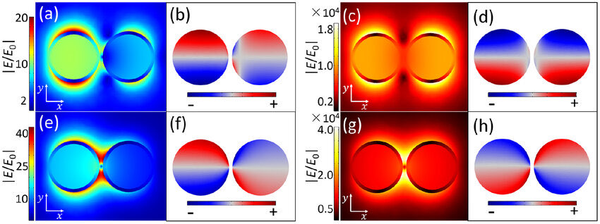 . The number under each panel indicates the maximum electric field enhancement value,