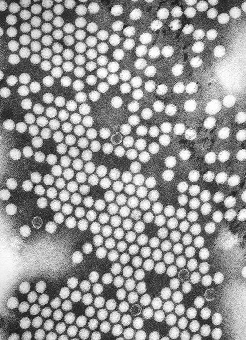A TEM image of a cluster of poliovirus