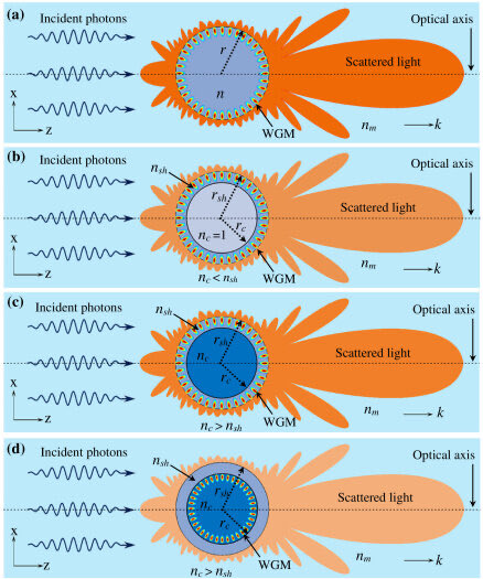 •Schematic Diagram: Figure (a) shows a 2D view of the eccentric core-shell microcylinder and the direction of the paraxial Gaussian beam used to illuminate it.