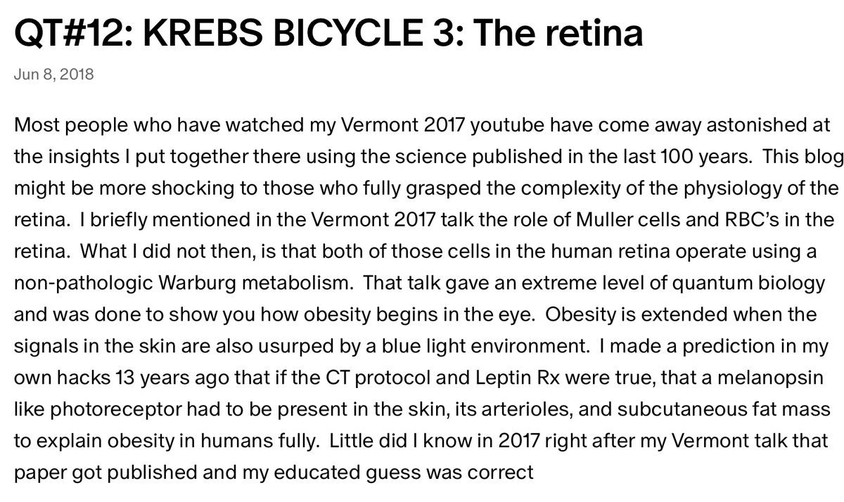 Fire your centralized doctor by hiring nature for your reversal! Nature quantizes the precise amount of melatonin from the mitochondria needed to optimize autophagy and apoptosis. 95% of melatonin is made in human mitochondria. It is not your pineal or your gut. Your central retinal pathways have more mitochondrial density in it than any other part of the brain. The same is true with DHA to run your SCN faster than the other molecular clocks in your body to meet relativity needs. Want more info on exogenous melatonin? Use Yandex search with my name and mitohack #722. Your welcome in advance.