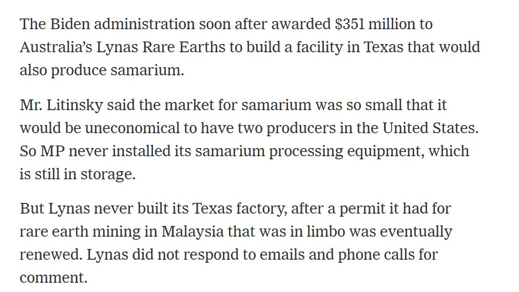 Quaint concerns by today's standards, but it illustrates how far the debate has come. The Biden Administration did put in place tariffs on rare earth magnets (phased in) back in early 2024, but it was a bit of a fight (concerns about raising cost of green transition) 6/