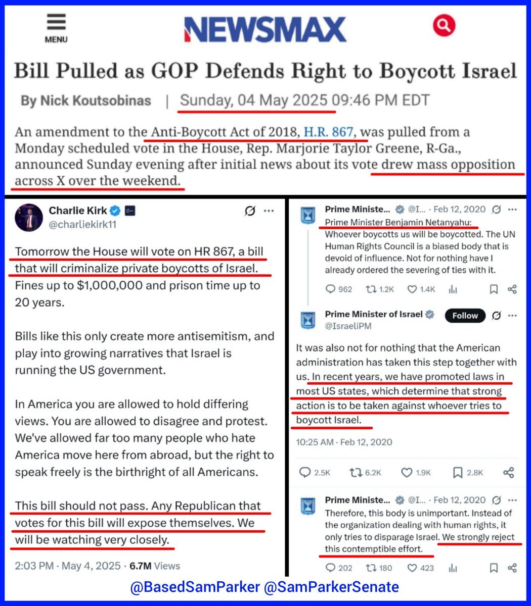 How do you think israel liked watching Charlie Kirk help defeat this existentially important legislation critical to its survival—2 days after having the chutzpah to tell Bibi how to do his job in better accommodating objections to israel from America's youth?