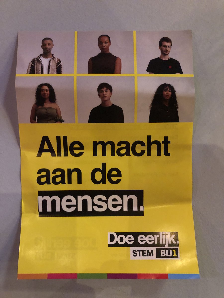 Ik heb een flyer van Bij1 gehad. Raar want hier komen mensen die al hun keuze gemaakt hebben, denk ik.