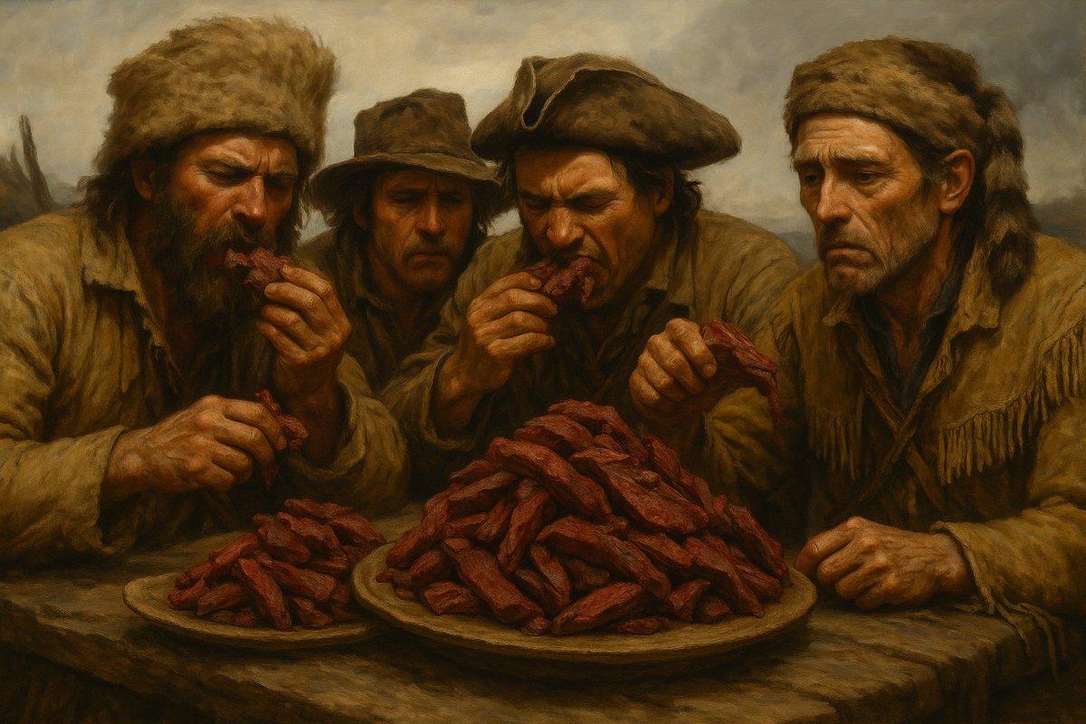 "Each man is now eating 9–12 pounds of meat per day, and still they say they are hungry." Image